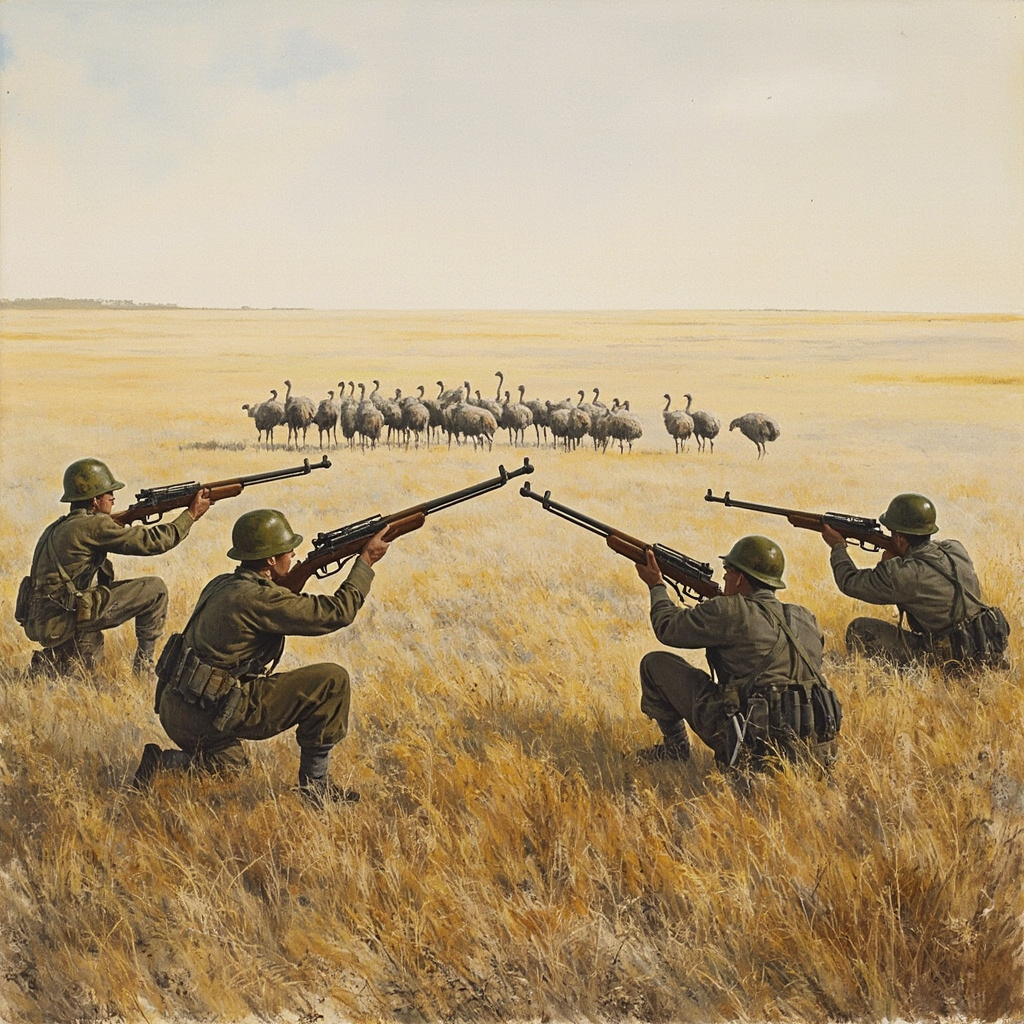 Even more frustrating for the soldiers, the emus seemed to develop countermeasures. They would post sentries while feeding, and at the first sign of military vehicles, the entire flock would disperse in different directions. Some reports described the birds as having an almost military-like organization in their retreat patterns.
