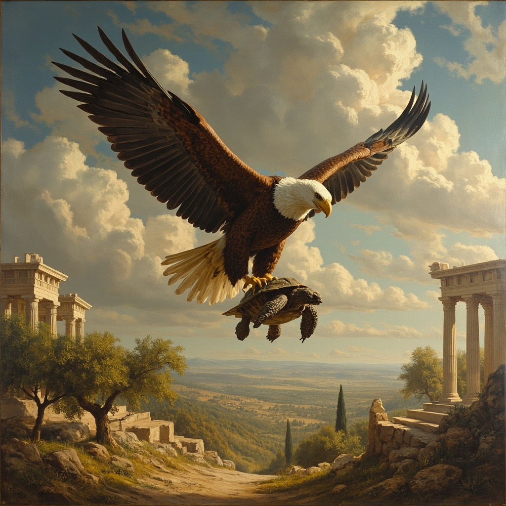 The irony was exquisite. In trying to avoid his fate, Aeschylus positioned himself perfectly for it. During his final visit to Gela in Sicily, the 67-year-old playwright was walking in an open area when a lammergeier (bearded vulture) soared overhead, clutching a large tortoise in its talons.